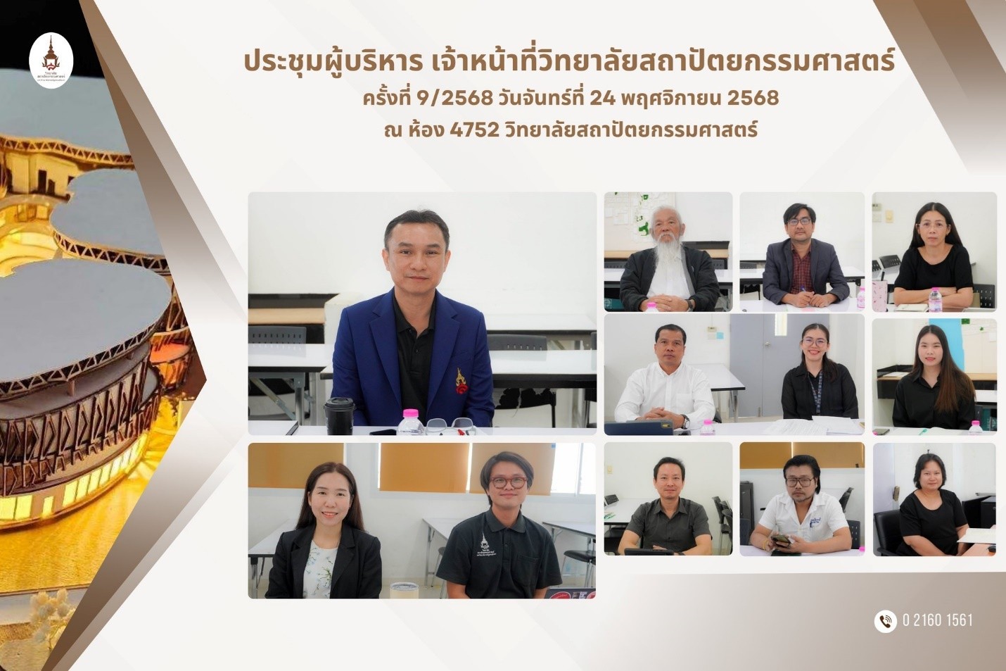 The College of Architecture held its 9th Executive and Staff Meeting of 2025 (No. 9/2568). The meeting was attended by university executives, faculty members, and staff to ensure a unified approach toward the college's objectives.