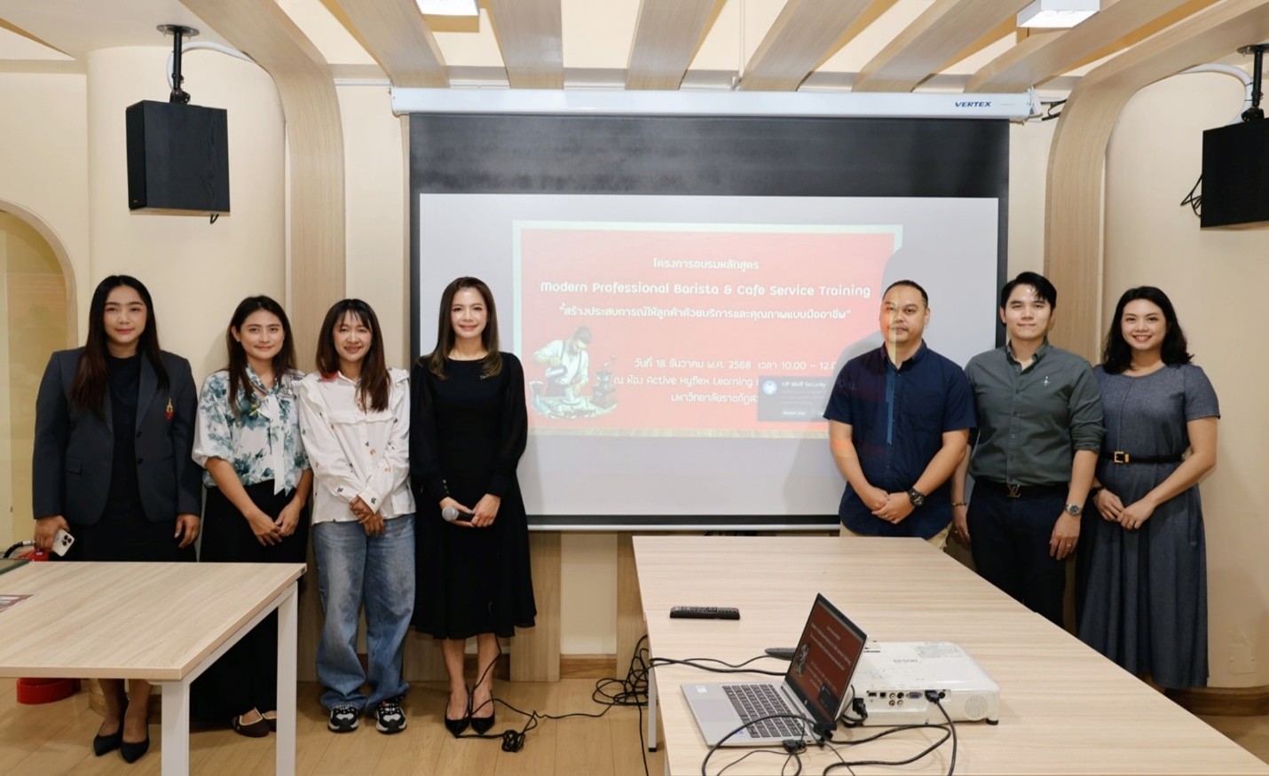 From December 29 to 30, 2025, the Business Development and Revenue Procurement Department of the Faculty of Management Science hosted the Modern Professional Barista & Café Service Training workshop under the theme "Creating Customer Experience through Professional Service and Quality." Asst. Prof. Dr. Chutima Klaysung, Dean of the Faculty of Management Science, presided over the opening ceremony, while Dr. Jeerapan Chanwichian, Associate Dean for Business Development and Revenue Procurement, delivered the project report. Asst. Prof. Dr. Nattaphong Techarattanased, Associate Dean for Research and Academic Services, also honored the event with his presence.