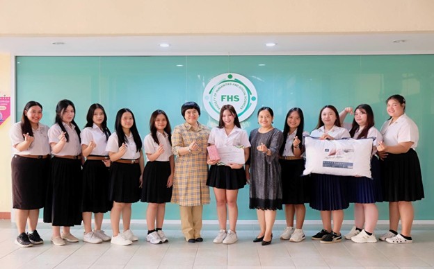 On this same occasion, Ms. Yasta Kloytamwong, acting as a student representative, donated sets of bedding to junior students. These items are intended for use during their upcoming one-year language and cultural exchange program at Yunnan Minzu University, People's Republic of China, commencing in February 2026.