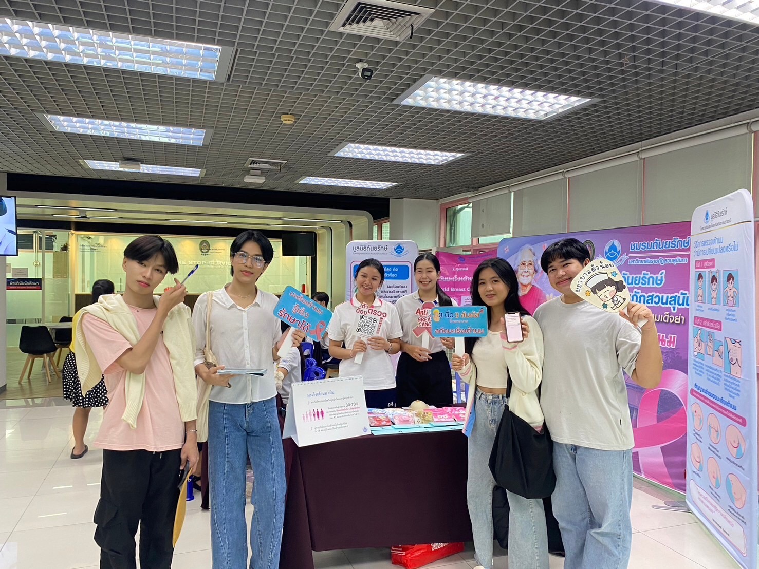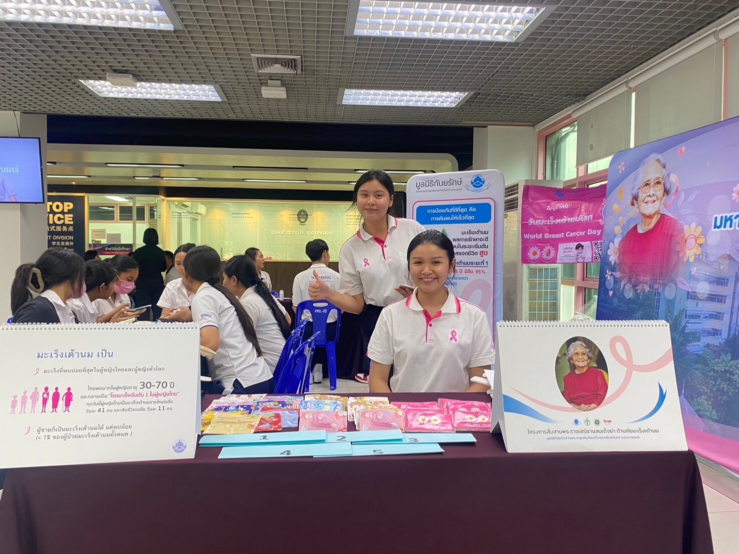 On October 7, 2024, at 9:00 AM, at the first floor of Suan Sunandha Health and Sports Center, the Division of Student Development, in collaboration with the Tanyaruk Club of Suan Sunandha Rajabhat University, organized a breast prosthesis sewing activity to donate to breast cancer patients. This initiative was a collaboration between Suan Sunandha Rajabhat University’s College of Nursing and Health and the Tanyaruk Club, alongside Sabina Public Company Limited, a producer and distributor of lingerie under the "Sabina" brand, which supported 50 breast prosthesis sewing kits in line with the event's goal.