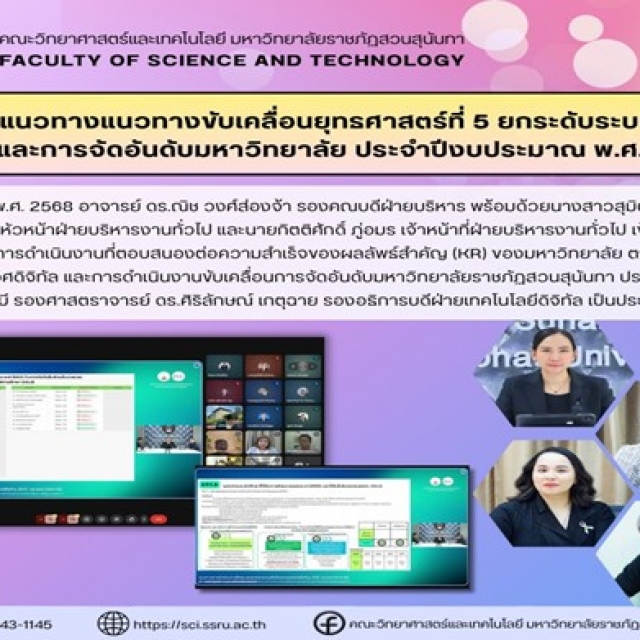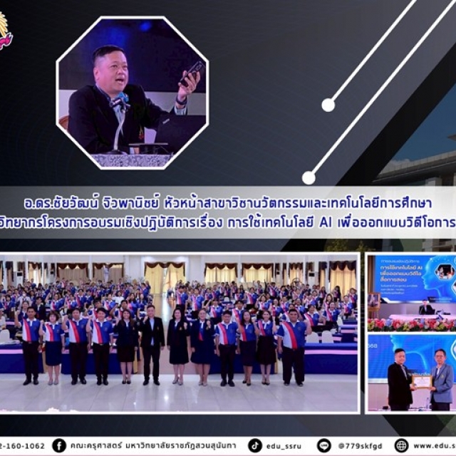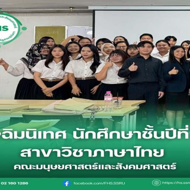 News & Event Faculty Members Honored with the "Purachatra Pin" for Distinguished Service to the Kamphaeng Phet Akkhayothin Camp Dean and Executives of the College of Nursing and Health Attend the 2025 Commencement Ceremony Faculty of Management Science Organizes "Volunteer Cleaning" Activity to Commemorate King Rama IX Visual Communication Design Program, Faculty of Fine and Applied Arts, Hosts "Amazing Journey" Student Creative Exhibition Dean and Personnel of the Faculty of Engineering and Industrial Technology Attend Meeting on Strategy 5 Guidelines (KR 5.1-5.7) and University Rankings for Fiscal Year 2026 Thai Language Program Hosts Post-Practicum Orientation for Senior Students (Class 65) for Academic Year 2025 Meeting on Strategic Advancement: Enhancing the Digital Ecosystem and University Rankings for Fiscal Year 2026 SSRU Lecturer Leads Workshop on AI Technology for Instructional Video Design at Triamudom Suksa Pattanakarn Nonthaburi School SSRU Shines Bright, Wins ITA AWARDS 2025 “Excellent” – Ranked No.1 among Higher Education Institutions 4 5 6 7 8