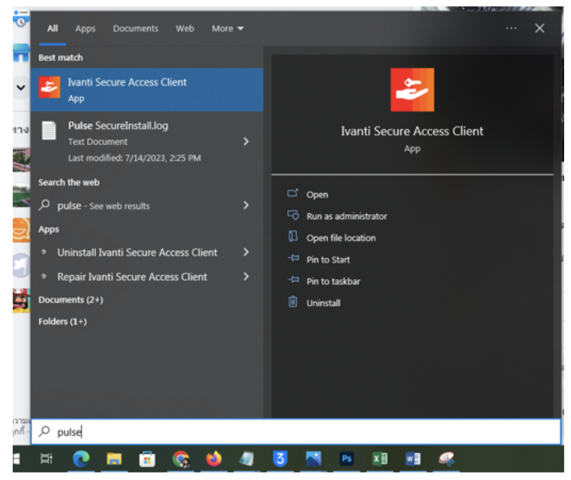 Step 3:After successfully installing the program, search for the program named 'Pulse Secure' and open it."