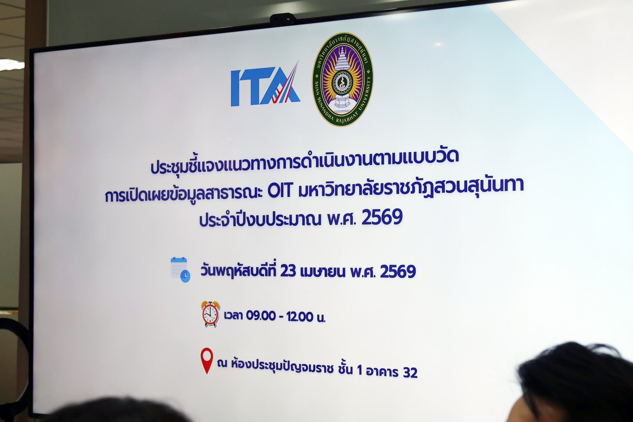 วันพฤหัสบดีที่ 23 เมษายน 2569 มหาวิทยาลัยราชภัฏสวนสุนันทา จัดประชุมชี้แจงแนวทางการดำเนินงานตามแบบวัดการเปิดเผยข้อมูลสาธารณะ (Open Data Integrity and Transparency Assessment: OIT) ประจำปีงบประมาณ พ.ศ. 2569 ณ ห้องประชุมปัญจมราช ชั้น 1 อาคาร 32