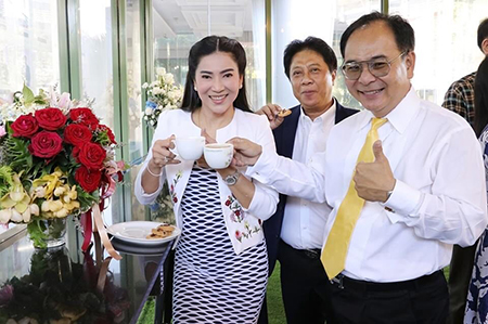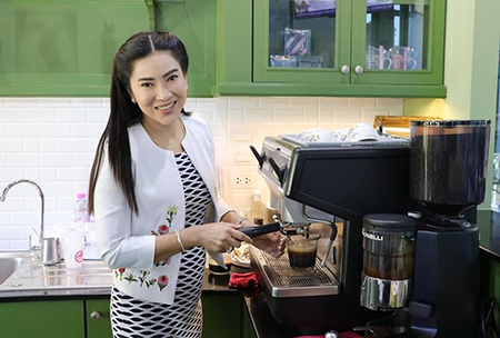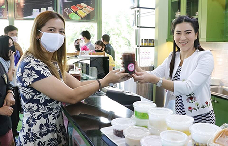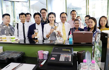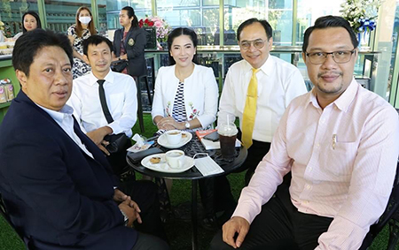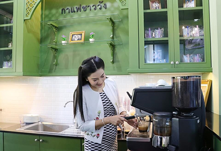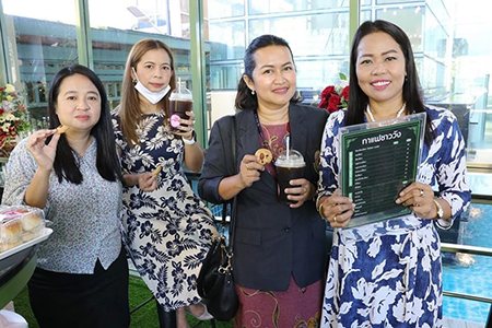 เป็นประธานการเปิดร้านกาแฟชาววัง อาคาร ๓๒ ชั้น ๑